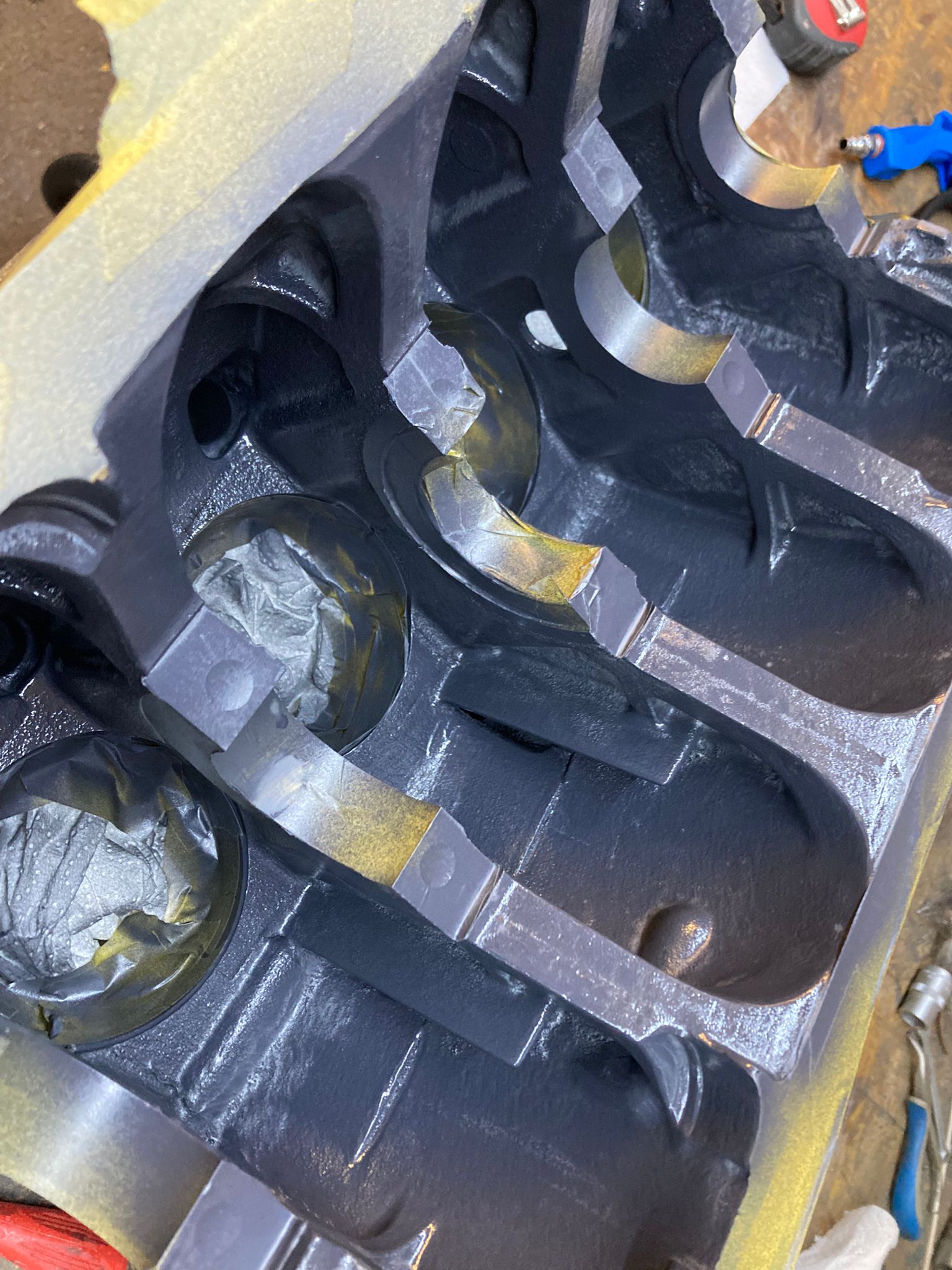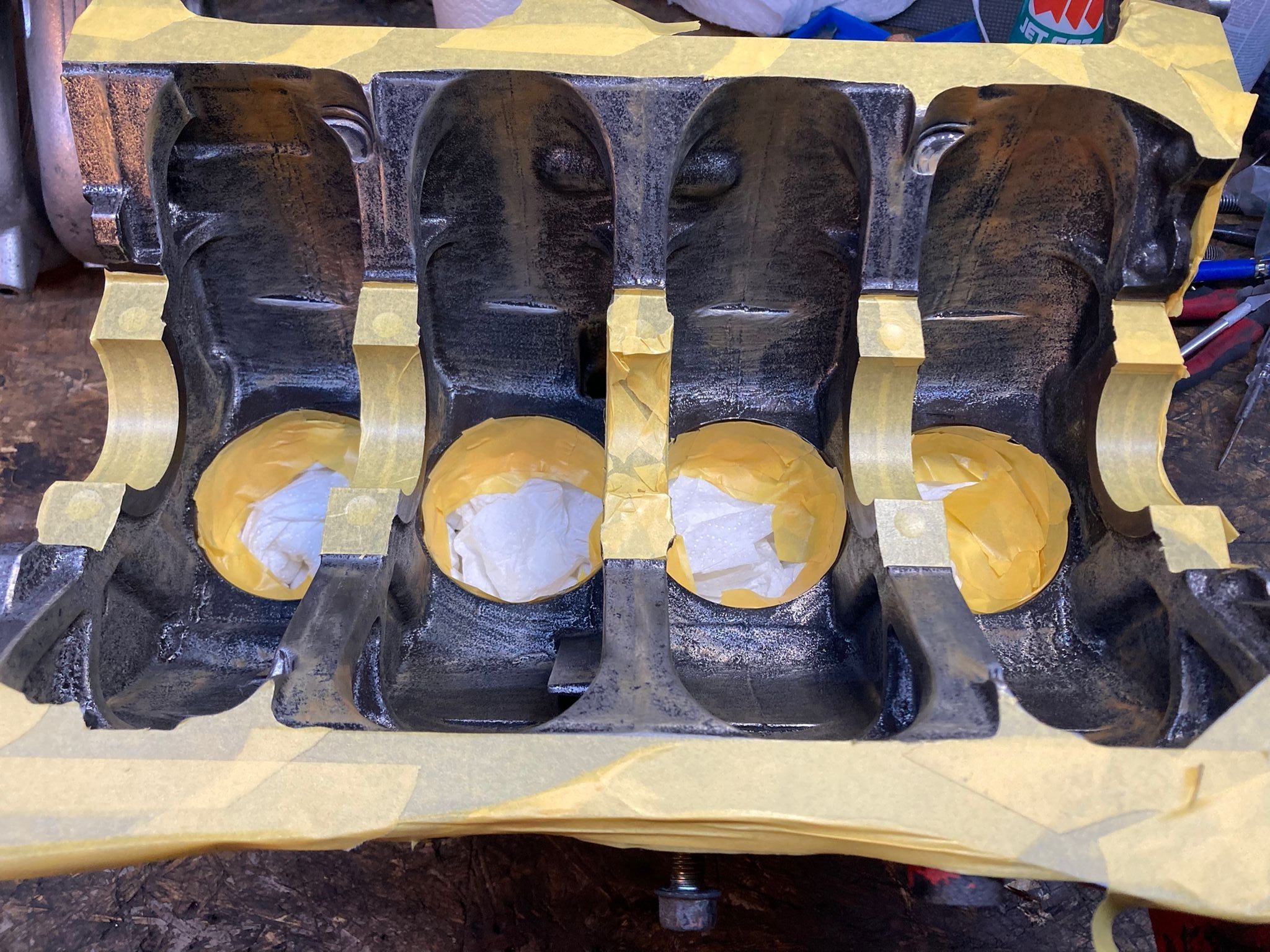 Au tour du short block de recevoir son traitement de faveur, un nettoyage en profondeur au kärcher, et ensuite séchage minutieux