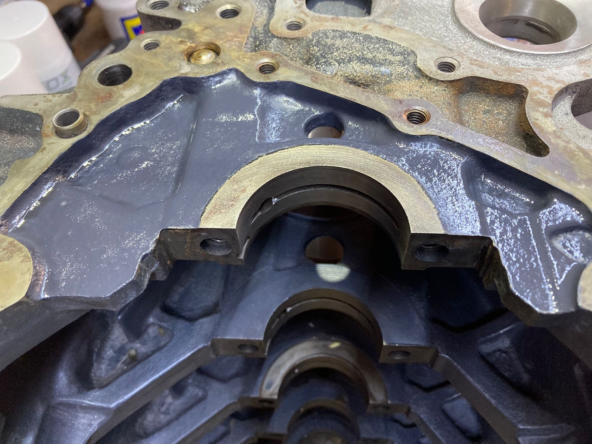 L'ancien propriétaire avec repeint le bloc avec une peinture epoxy qui m'a donné du fil à retordre au sablage... Bref, encore quelques heure de nettoyage et dégraissage minutieux...