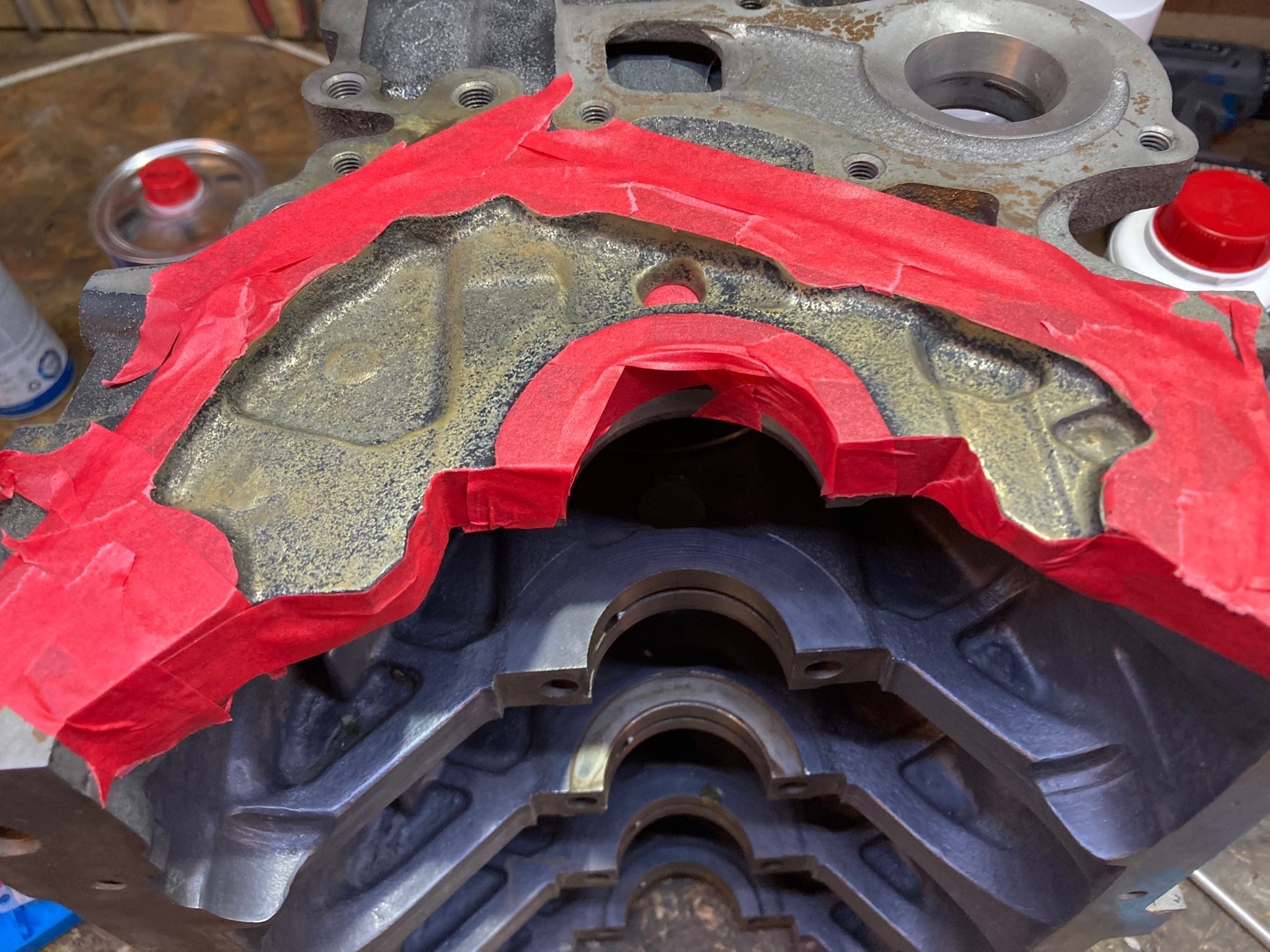 L'ancien propriétaire avec repeint le bloc avec une peinture epoxy qui m'a donné du fil à retordre au sablage... Bref, encore quelques heure de nettoyage et dégraissage minutieux...
