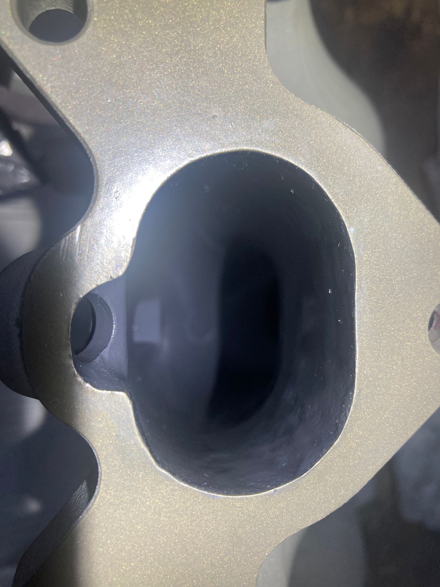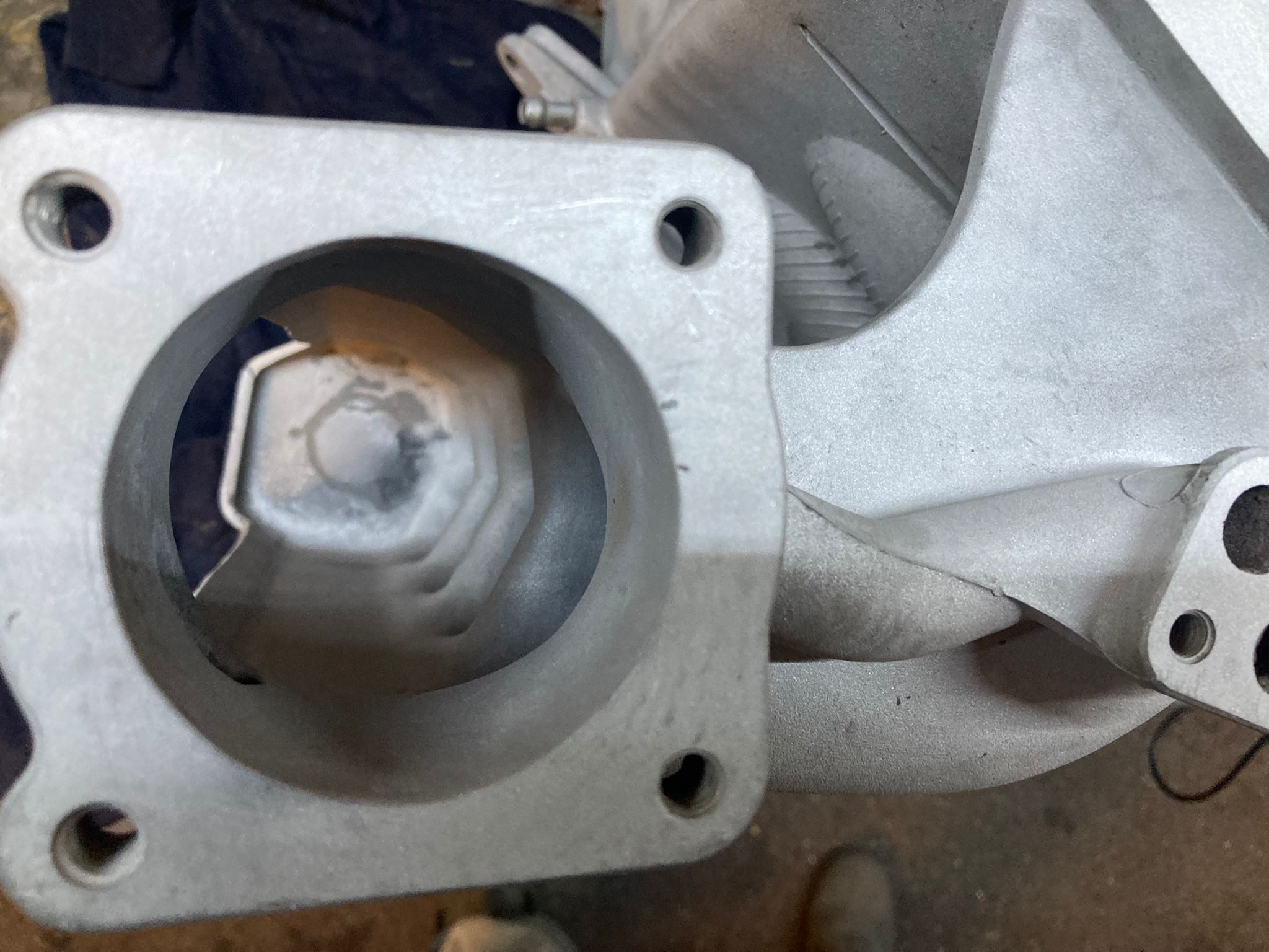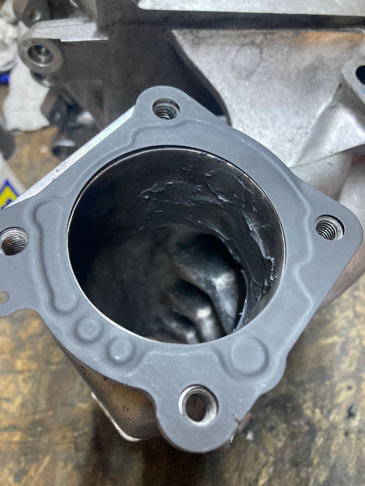 -Un dépot de suie noir, proche du point d'injectiom, sans doute du à un retour d'admission via a fuite.